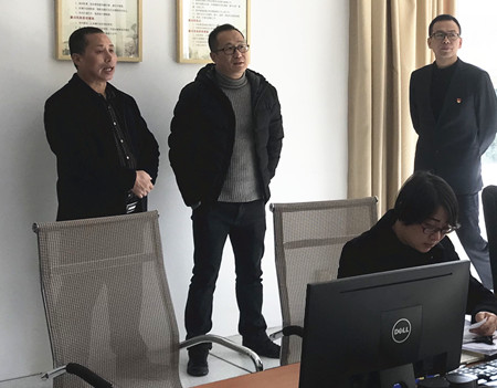 圖為集團副總經(jīng)理章海峰一行在監(jiān)控室檢查監(jiān)控設(shè)備