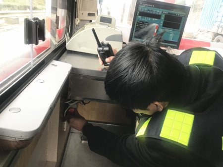 圖為工作人員自查崗?fù)?bào)警器 此外,工作人員對收費(fèi)區(qū)域內(nèi)的消防、交通、崗?fù)ぴO(shè)施設(shè)備,以及票證、通行費(fèi)等安全情況進(jìn)行了一次自查,確保安全用電,做好消防和防盜措施,并對當(dāng)班收費(fèi)員進(jìn)行現(xiàn)場稽查,檢查大家在當(dāng)班期間的崗?fù)きh(huán)境是否衛(wèi)生,臺面是否整齊,著裝是否統(tǒng)一,有無佩戴上崗證,儀表舉止是否規(guī)范,文明用語是否親切,以及抽屜大額現(xiàn)金有沒按規(guī)定放入保險(xiǎn)箱等。大家的合力檢查和相互配合,為春運(yùn)安全暢通、防寒防凍工作提供了強(qiáng)有力的保障。 陳瑩