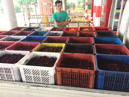 圖為落地楊梅 這兩輛本地牌照的小貨車分別從三門、仙居入口,進入臺州收費所四號、五號車道。檢查人員發現其所裝載的楊梅均為落地梅,并散發刺鼻的酸腐味,裝楊梅的筐里漚著一大灘的汁水,司機稱這是收購來做罐頭的。但根據交通運輸部、國家發展改革委、財政部《關于進一步完善鮮活農產品運輸綠色通道政策的緊急通知》(交公路發〔2010〕715號)等有關文件規定,合法裝載新鮮水果,而不是進行二次加工、或酸敗變質的才可享受免費通行。 這兩車滯留車道一個半小時,并要棄車離開,當班班長張海勇在跟司機講解政策無果后,先后向高速交警指揮中心和110指揮中心報警求助,110把車引導到外廣場。最后在該所所長王小勇和當班班長等人的耐心講解下,至晚上8時,司機認識到這些落地梅將加工成楊梅干和楊梅罐頭的,并非屬于鮮活農產品,不享受國家免費政策,現場分別補交了60元和40元通行費。 由于最近是楊梅成熟季節,運輸楊梅的綠農車逐漸增多,但部分司機心存僥幸,拉落地梅冒充優質楊梅,企圖蒙混過關。臺州收費所工作人員在司機不理解綠色通道減免政策,不配合收費工作時,堅定執行綠色通道政策的決心,對違規綠農車要求免費不妥協不讓步,讓司機沒有可乘之機,真正做到照章收費,應征不漏。 鄭瑛芝
