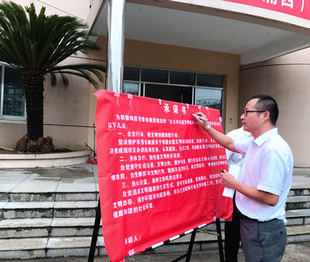 圖為公司副總經(jīng)理章海峰在承諾書上簽名