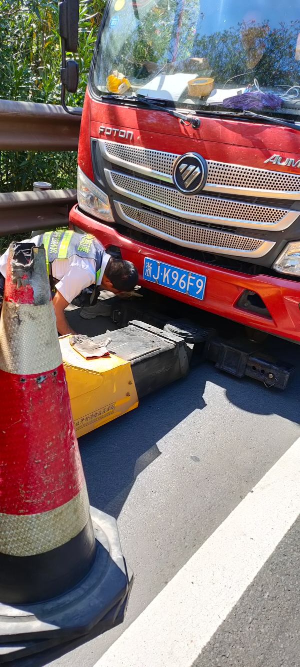 8月14日中午12點50分,施救中心接到報警,甬臺溫高速寧向距離臺州收費所大概5公里的地方有小車拋錨,需要救援。